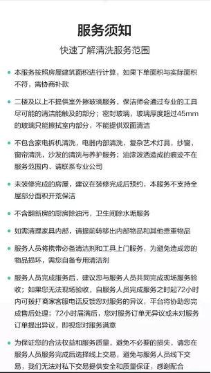 除外范围    建筑垃圾清运、灯具、吊顶、家居清洗、家电清洗、贵重物品